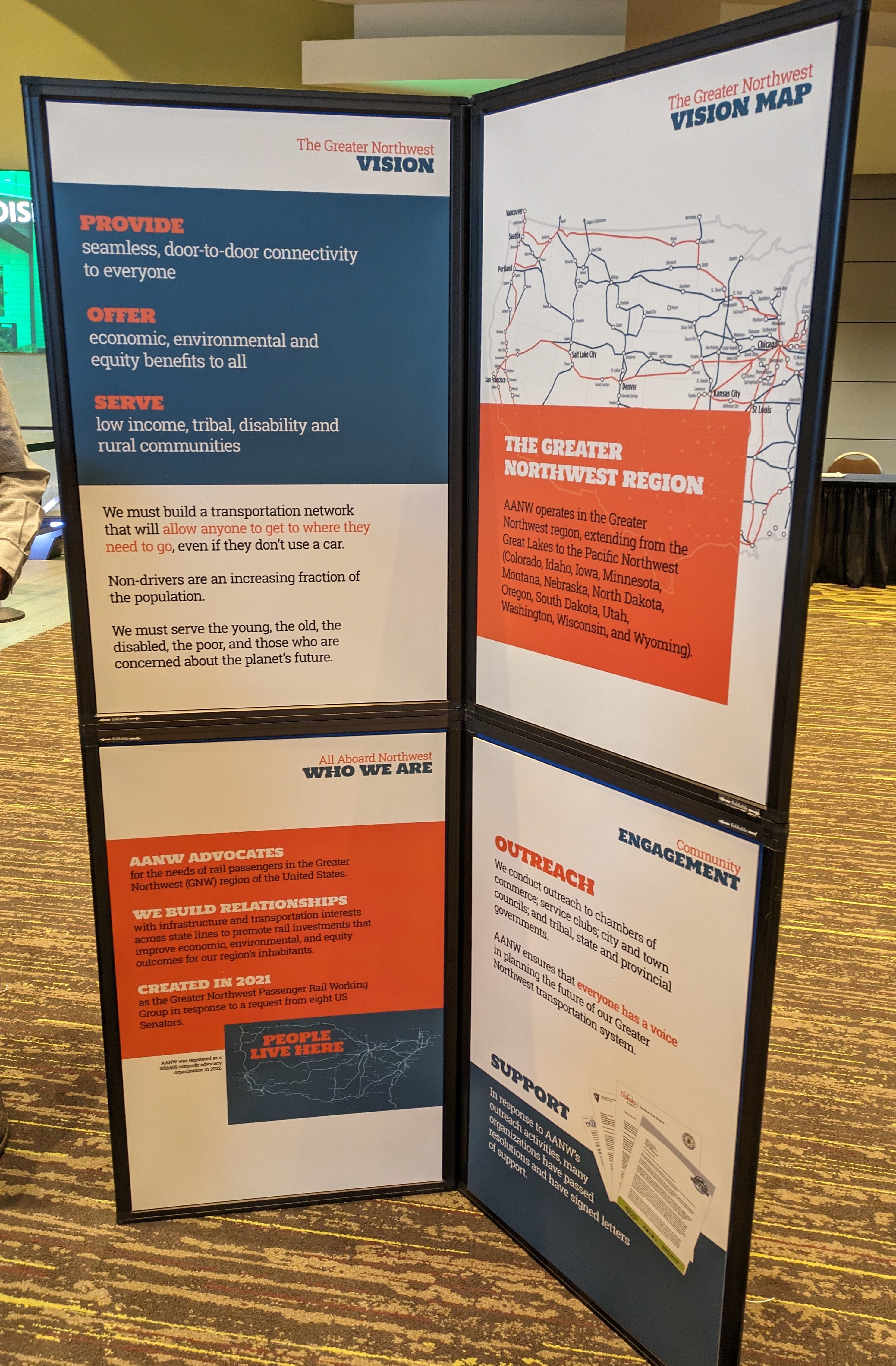 All Aboard Northwest engages, educates and energizes the public, elected officials, business and local leaders, through outreach, Train Treks, presentations for legislators and communities, advocacy, soliciting resolutions and letters of support, publicity, coalition building and event planning.